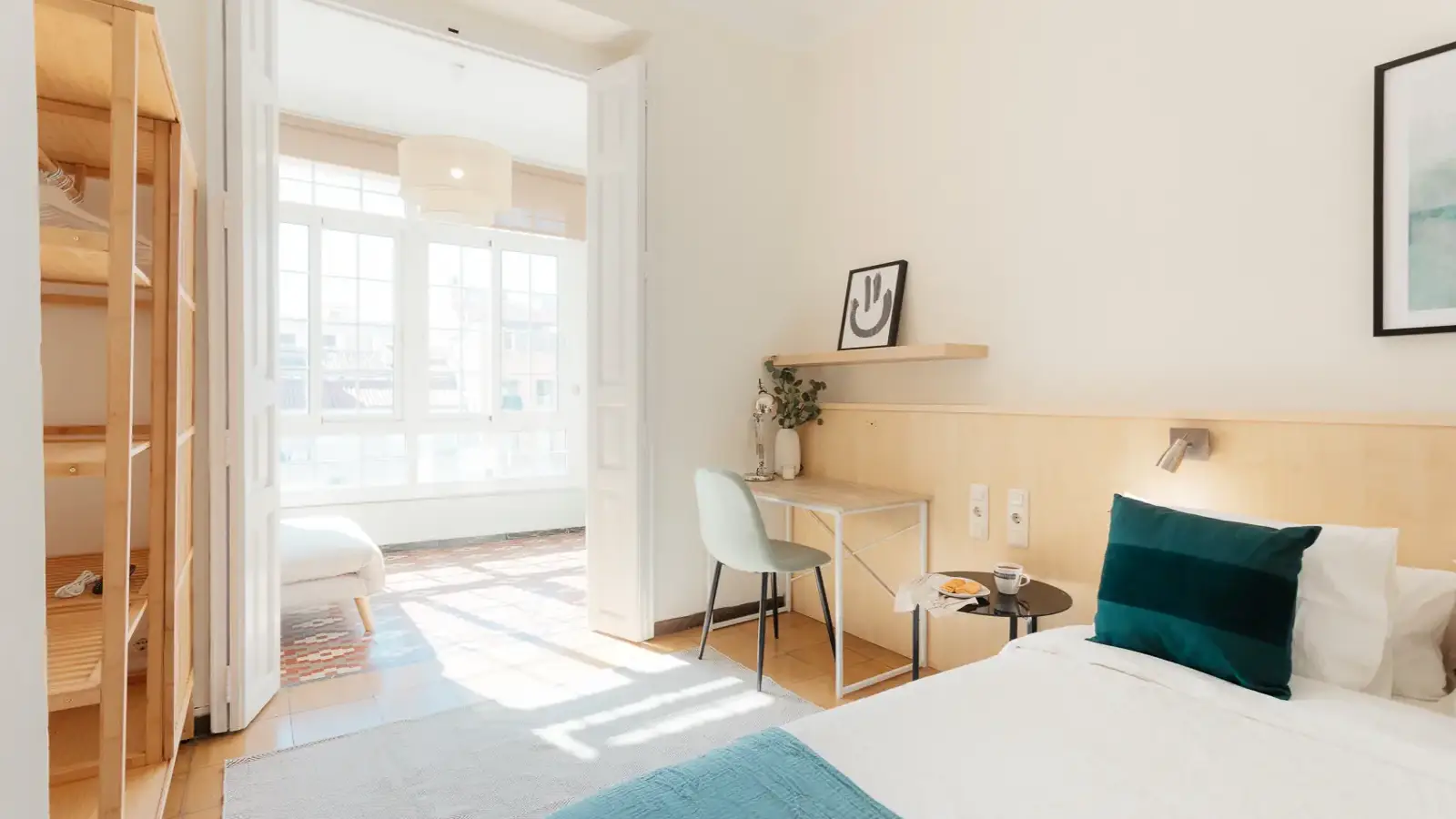 This is a room in a shared 8-bedroom apartment located in the La Gran Vía neighborhood of Valencia. The property comes fully furnished, including individual air conditioning units, a private washing machine, a dishwasher, an oven, and a TV. Being checked by a Spotahome Homechecker ensures your confidence in the verified listing details.