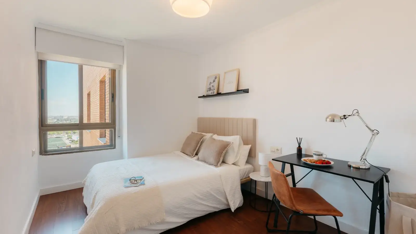 This shared room in La Carrasca offers a welcoming space, fully furnished for your convenience. It's equipped with modern amenities including a dishwasher and TV. The apartment has undergone verification by Spotahome, ensuring the quality of your living environment.