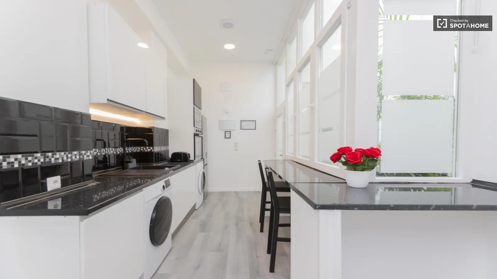 This studio in the En Corts neighborhood of Valencia is fully furnished and comes with a private washing machine and dryer. The kitchen is equipped with an oven and all necessary amenities, providing convenience to the tenants. The property is exterior and features central air conditioning. Bills are included, covering electricity, water, gas, and WiFi. Additionally, the property has been personally checked by Spotahome, ensuring peace of mind for prospective tenants.