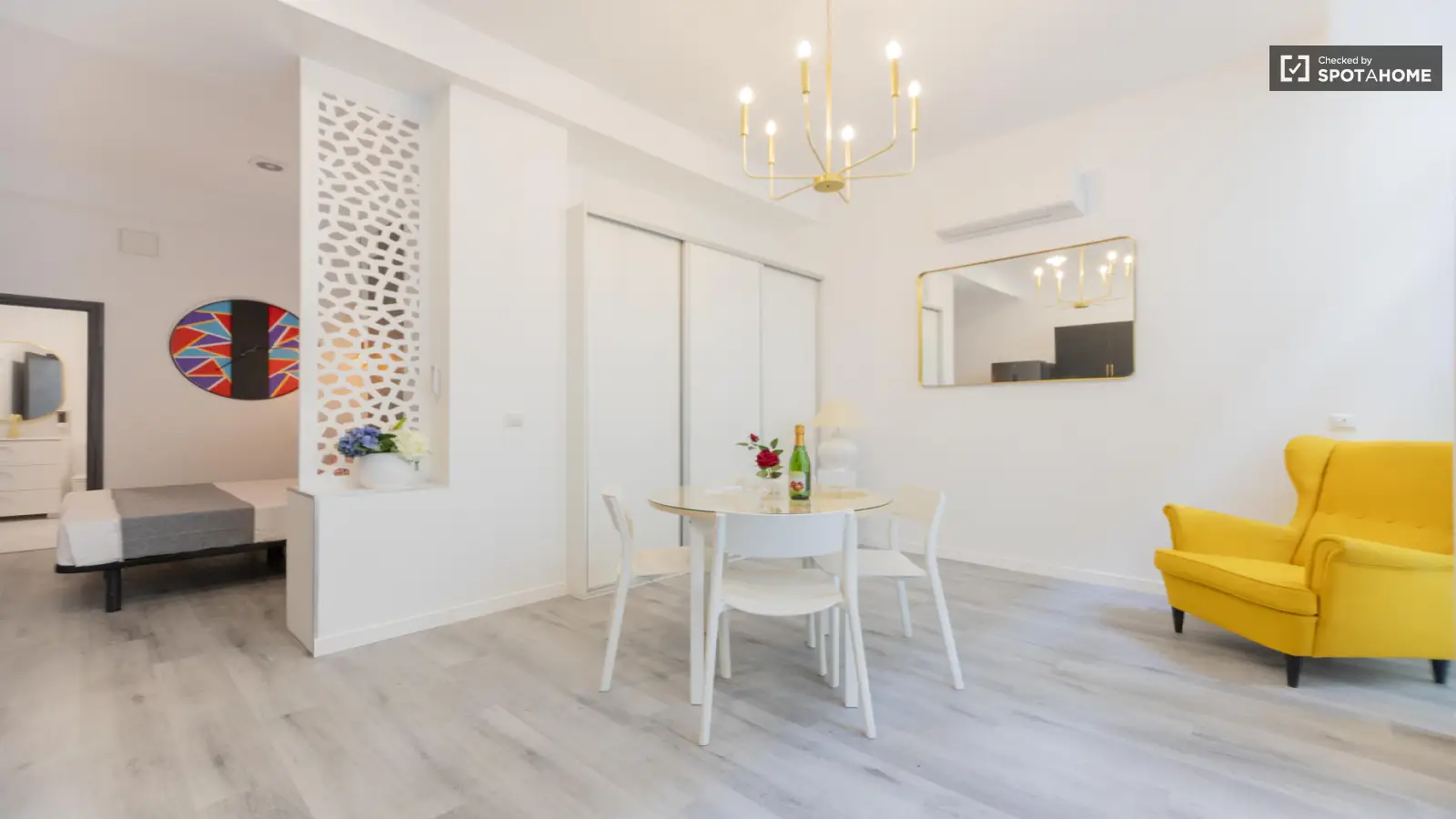 This charming studio in En Corts, Valencia, offers a cozy and fully furnished living space. It features central air conditioning, an equipped kitchen with an oven, and private washing machine. The studio includes all bills (electricity, gas, water, and wifi) for added convenience. Smoking and pets are not allowed. It's verified by Spotahome, ensuring quality and trust.
