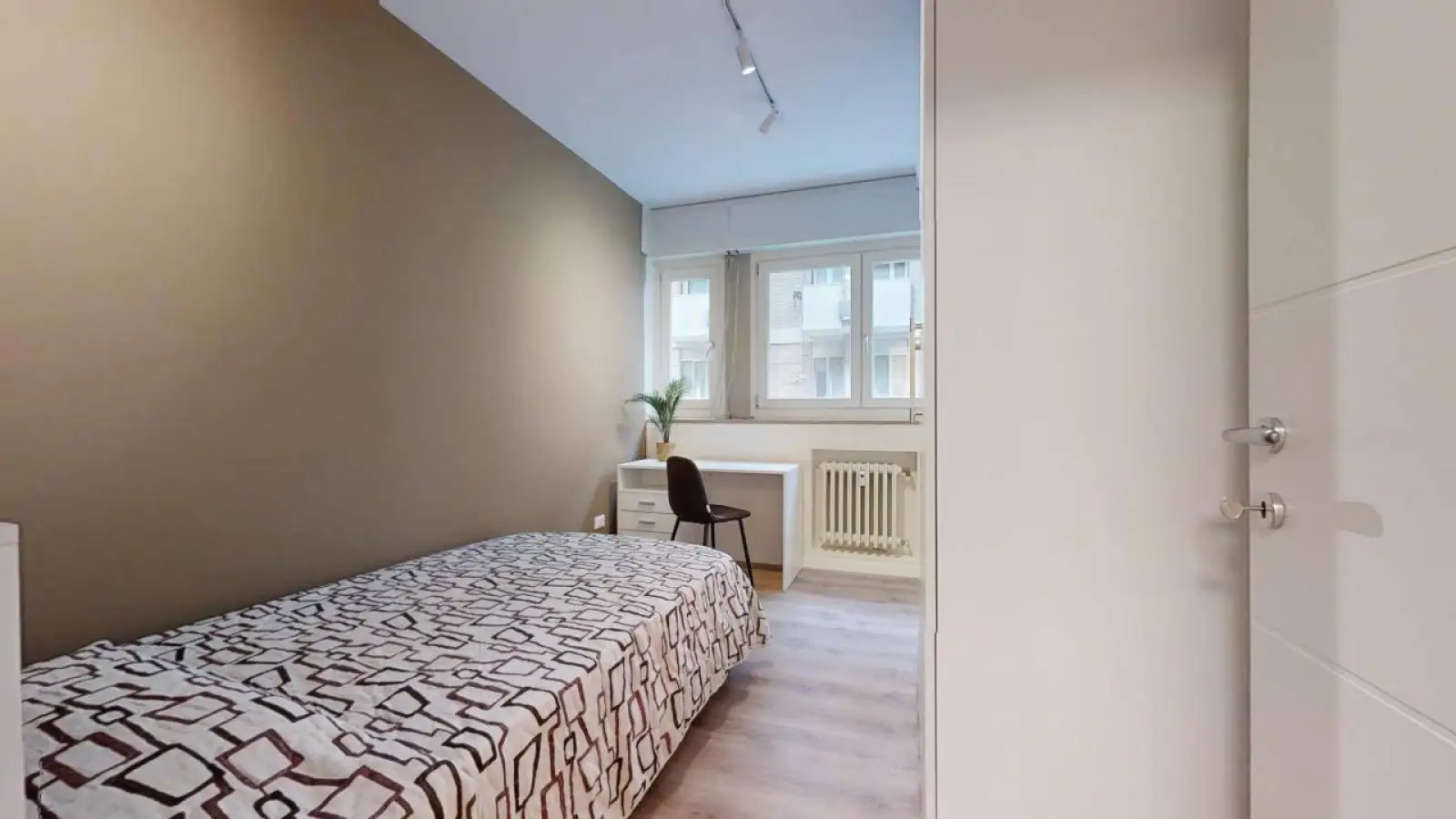 This shared room in Mestre San Lorenzo-25 Aprile offers essential furnishings, including a desk, chest of drawers, and storage options. Ideal for accommodating your needs, this property provides a practical space for comfortable living. All Spotahome landlords are thoroughly vetted to ensure reliable listings.