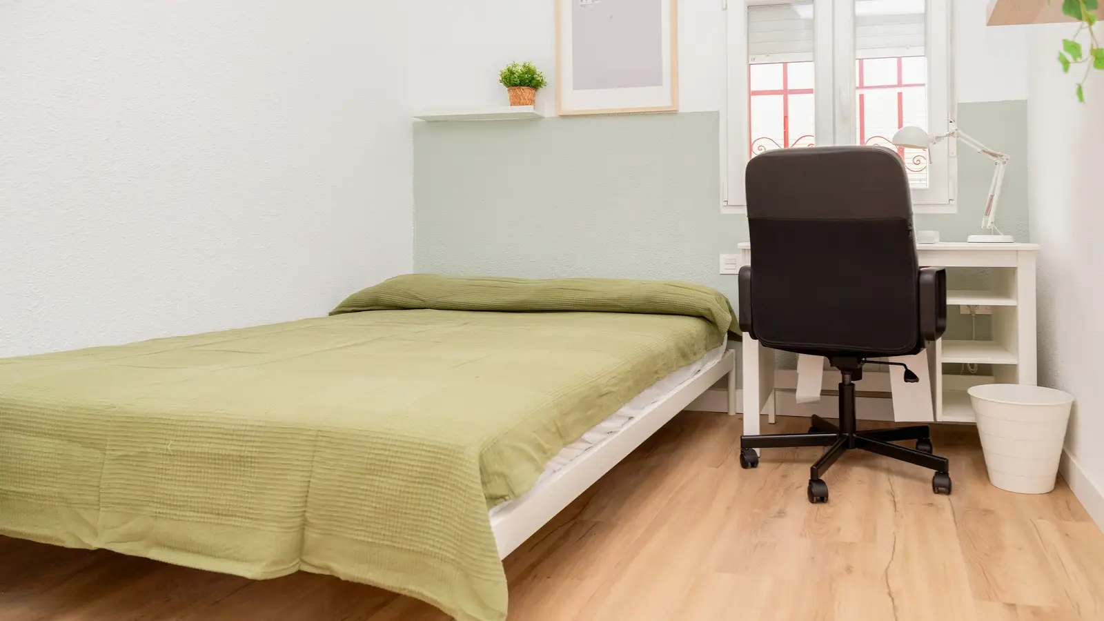 🛌 Habitación de cama doble 📚 Escritorio con silla y flexo 👚 Armario 📺 TV 🌡️ Calefacción 🪴 Decoraciones 🔑 Puerta con cerradura 🤑 Gastos incluidos: agua, luz y wifi